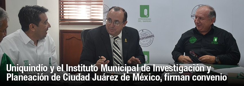 Uniquindío y el Instituto Municipal de Investigación y Planeación de Ciudad Juárez de México, firman convenio 29 noviembre, 201729 noviembre, 2017 Juan David Parra Valencia Anterior Siguiente Foto de firma de convenio Uniquindío y el Instituto Municipal de Investigación y Planeación de Ciudad Juárez de México.